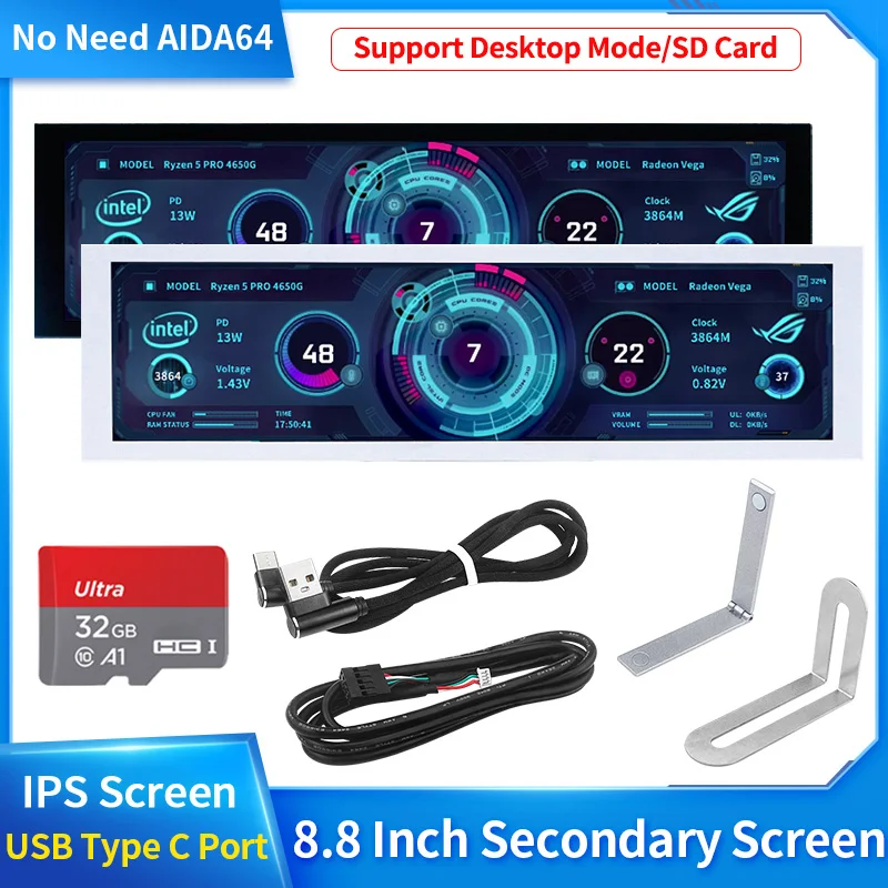 8.8 Inch IPS Type C Secondary Screen USB-C Interface Computer Monitoring CPU GPU RAM Dislpay Smart Screen No Need AIDA64  Read more