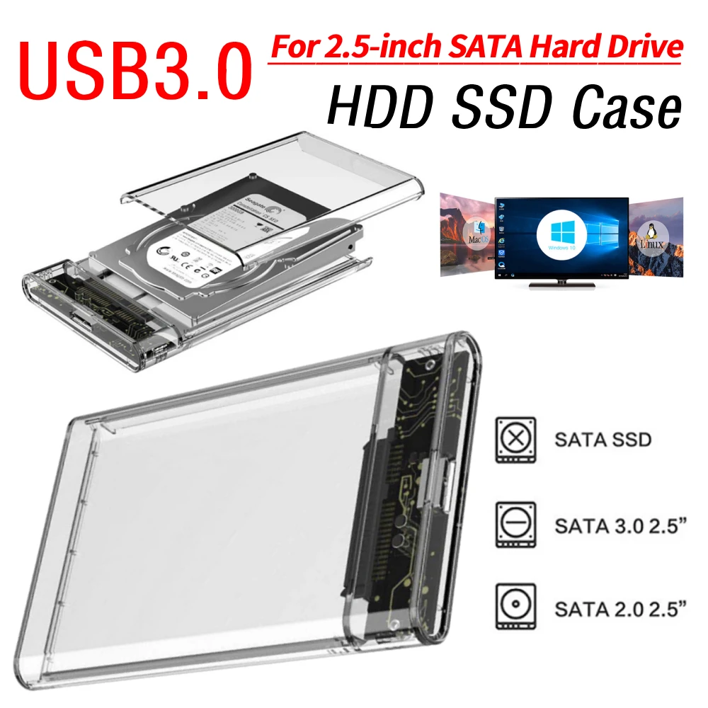 Transparent HDD Case HDD Enclosure 2.5 Inch SSD SATA To USB 3.0 Type-C 3.1 Adapter Portable External Hard Drive Box Tool-Free  Read more