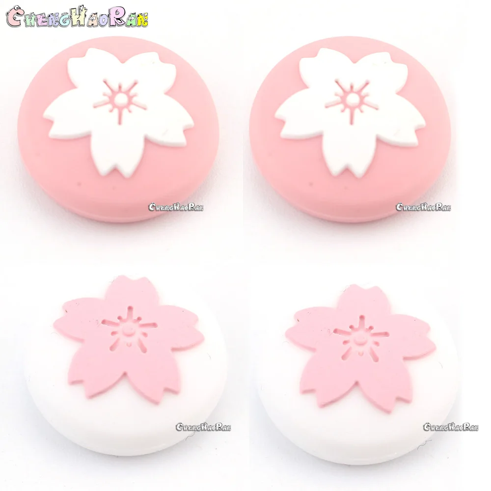 4pcs Sakura Joy Con Thumb Grips Joystick Caps Pink Soft Silicone Covers Button For Nintendo Switch Oled Lite Controller