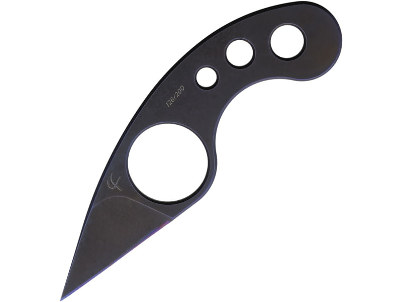 Fred Perrin La Griffe Titanium 1.50 in Fixed Blade Knife FPGT. 5" (11.43cm) overall. 1.5" (3.81cm) blade. Finger ring. Black stonewash blue anodized one-piece titanium construction. Serialized limited edition. Black Kydex sheath. Boxed....  Read more