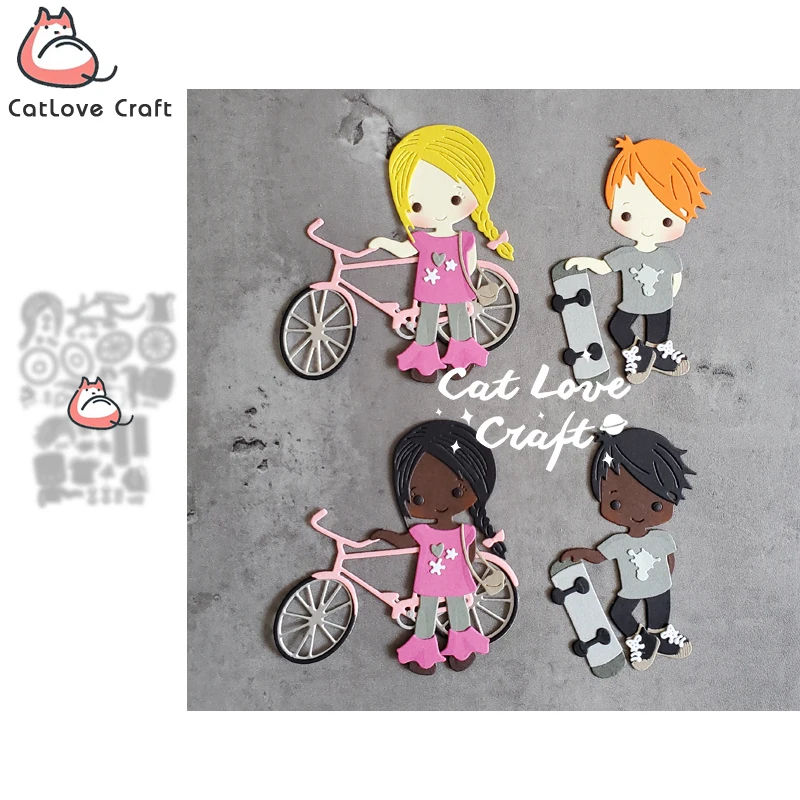 Bike girl Skateboard boy Metal Cutting Dies Scrapbooking Stencil Die Cuts Card Making DIY Craft Embossing New Dies For 2021
