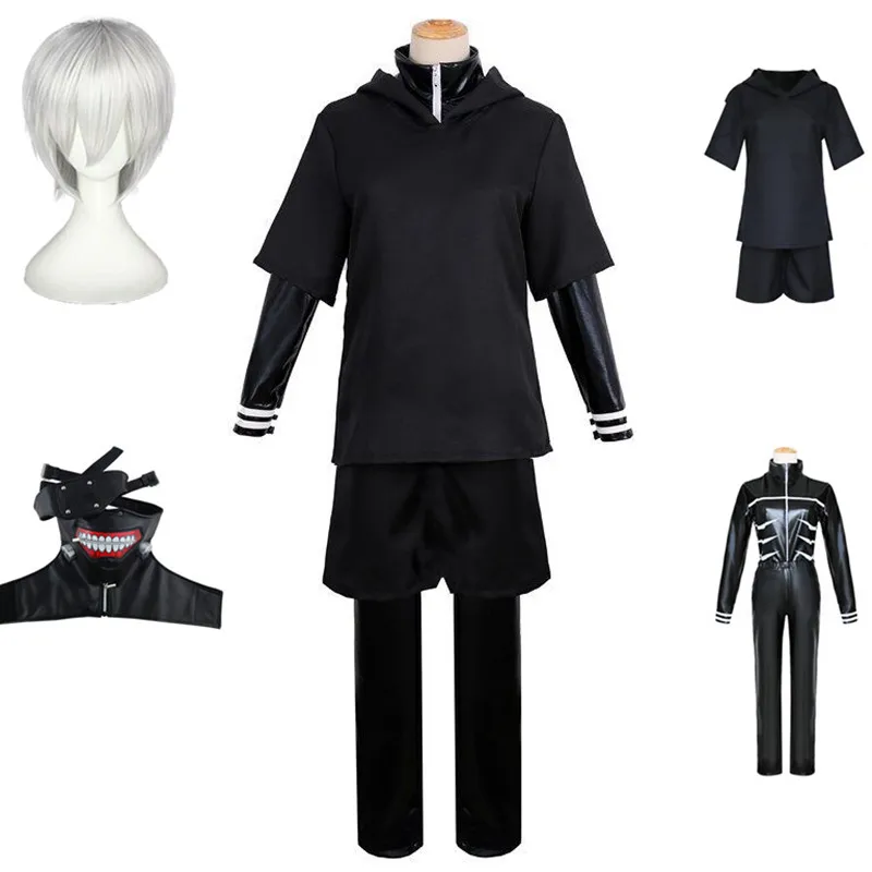 Anime Tokyo Ghoul Ken Kaneki Costume Black Leather Fight Uniform Women Men Halloween Cosplay Full Sets With Mask Wig