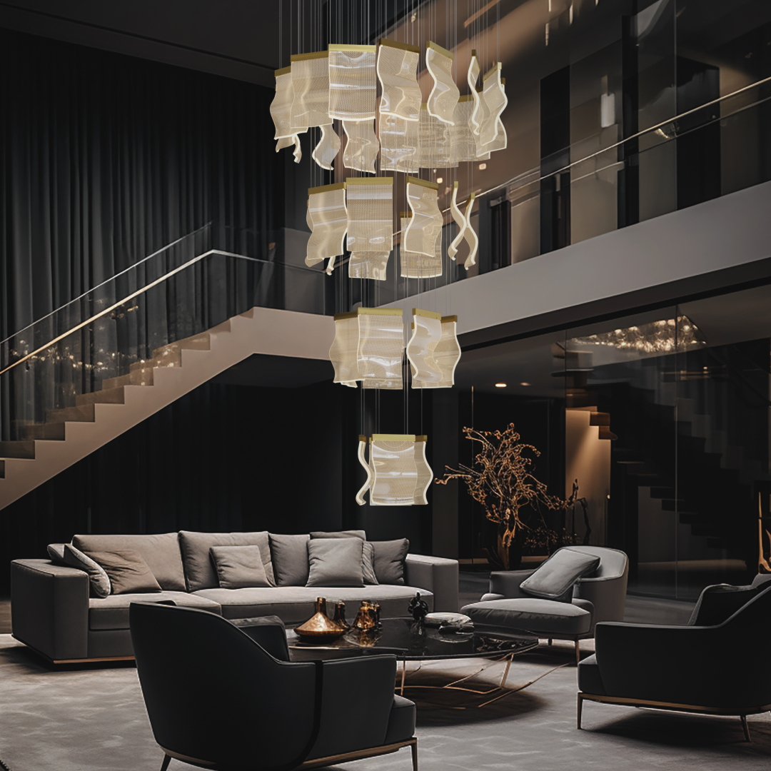 Kasper | Modern Staircase Chandelier | Gold / 32 Lights / Warm White (3000k) | MOD LIGHTING