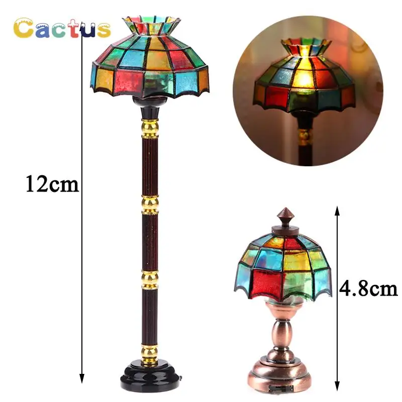 1:12 Dollhouse Retro European Style Mini LED Lamp Double-head Flower Ceiling Light Lamp Live Room Standing Lamp (with Battery)  Read more