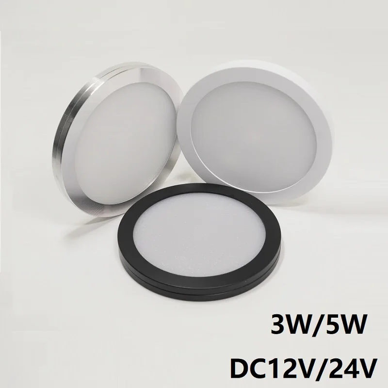 Dimmable Ceiling Spot Indoor Home Led Lamp 12V 24V Thin Round Surface Mounted Light Showcase Display Cabinet RV Camper Van 3W 5W