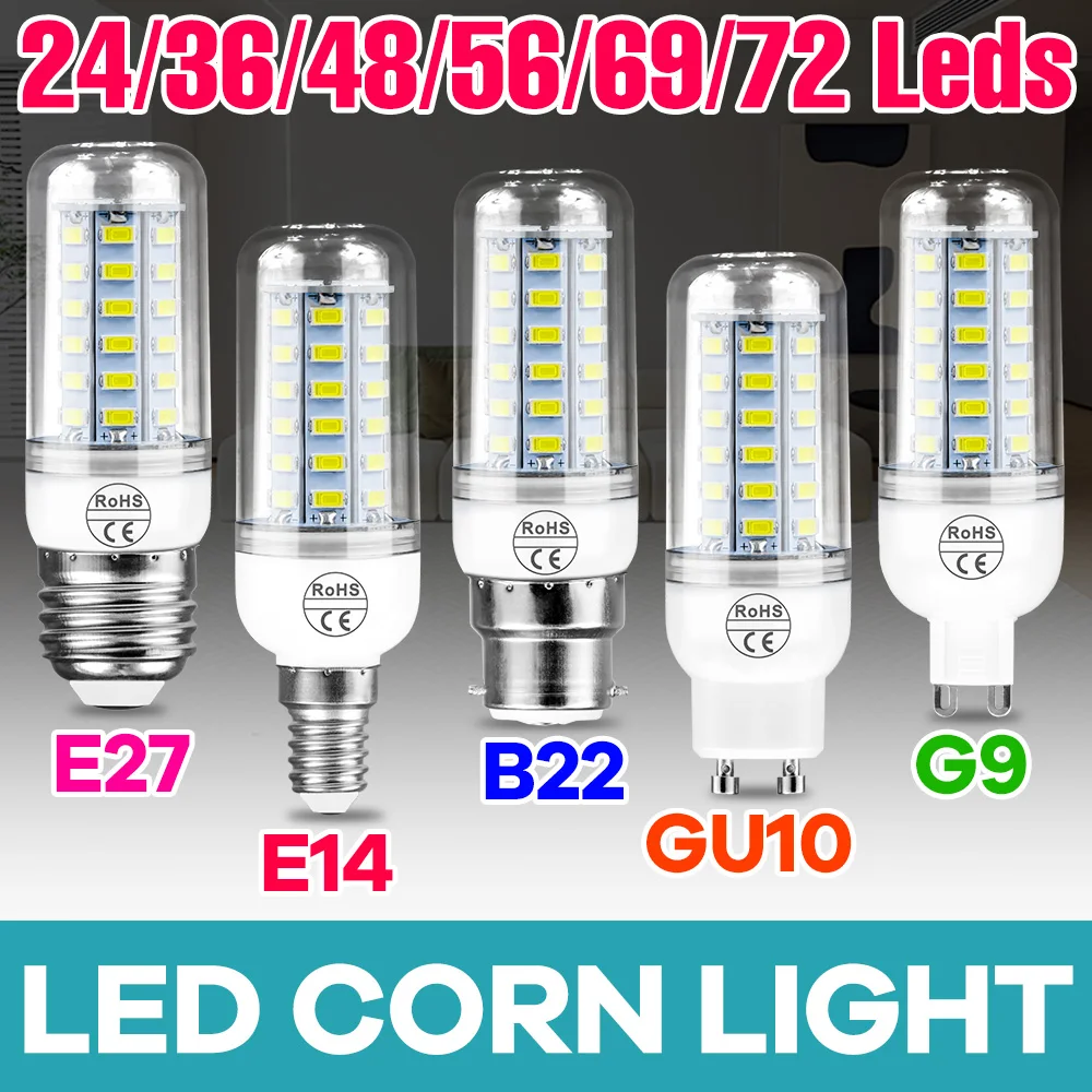 E27 LED Bulb E14 Corn Light 220V Lamp B22 Ceiling Chandelier GU10 Spotlight G9 Indoor Home Bedroom Soft Lighting Cool/Warm White