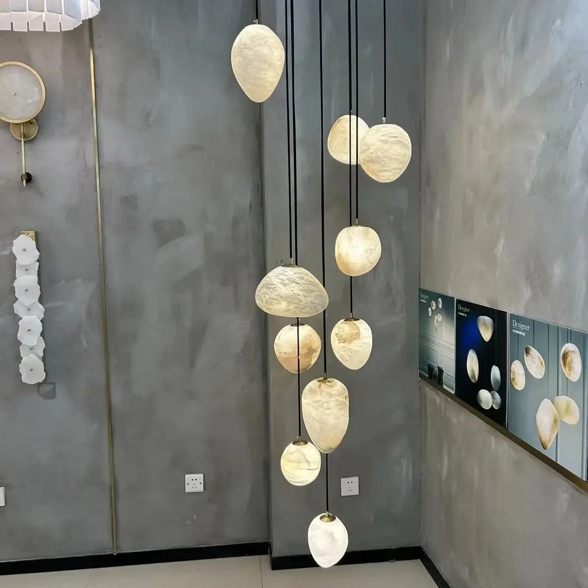 Natural Marble Irregular Hanging Lamps For Ceiling Lustre Pendant Lights Copper LED Suspension Luminaire Lampen For Living Room