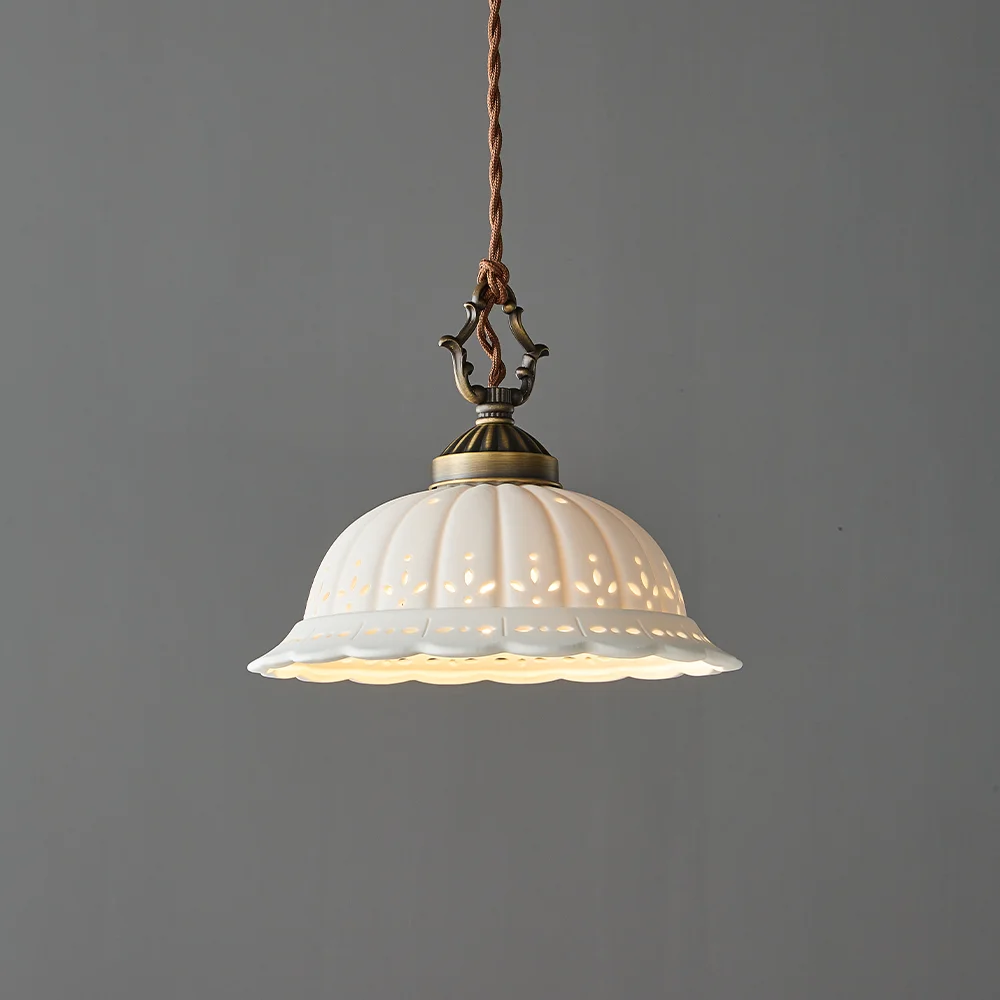 Vintage White Ceramic Pendant Light Old Copper Dining Room Bar Bedroom Lamp E27 Bulb Dropshipping Wire Adjustable Room Decor