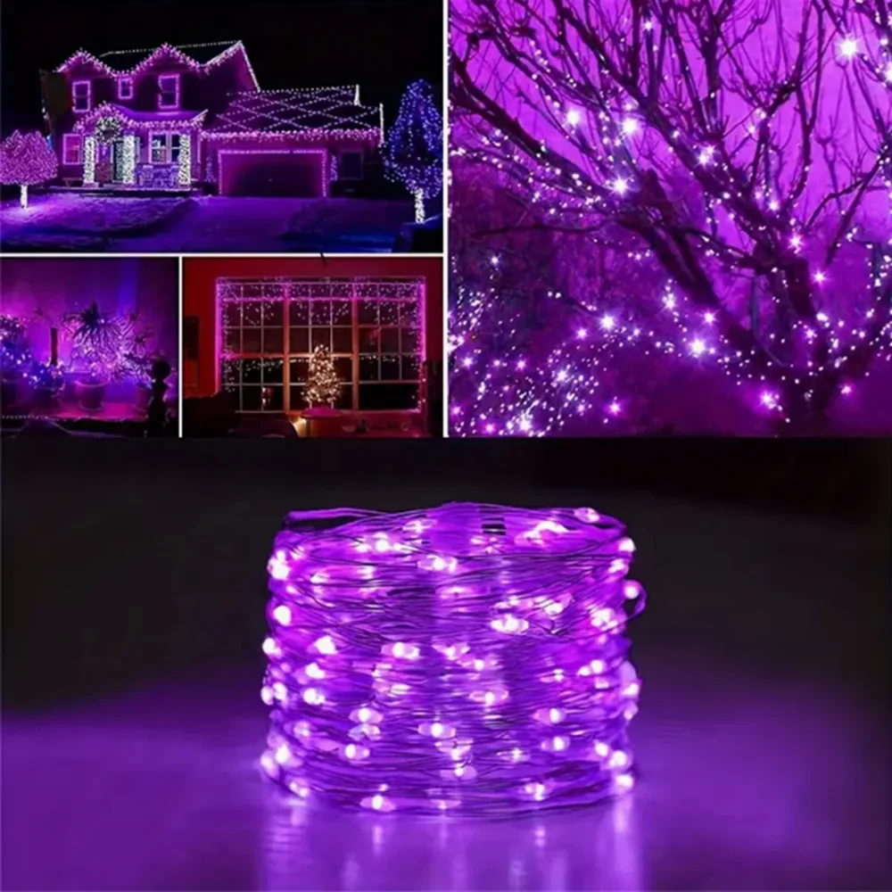 10m 100LED-3m30LED Fairy Light AA Battery Powered, Purple Copper Line Light, Suitable for Bedroom, Christmas, Party Decoration