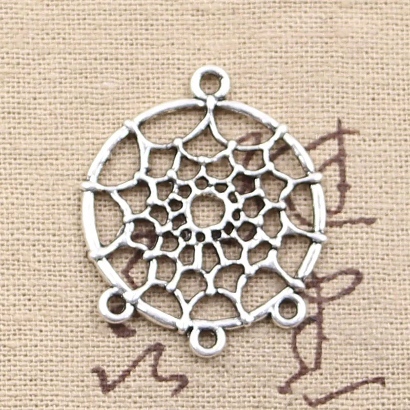12pcs Charms Native Dream Catcher Chandelier Connector 34x28mm Antique Bronze Silver Color Pendant DIY Making Tibetan Jewelry