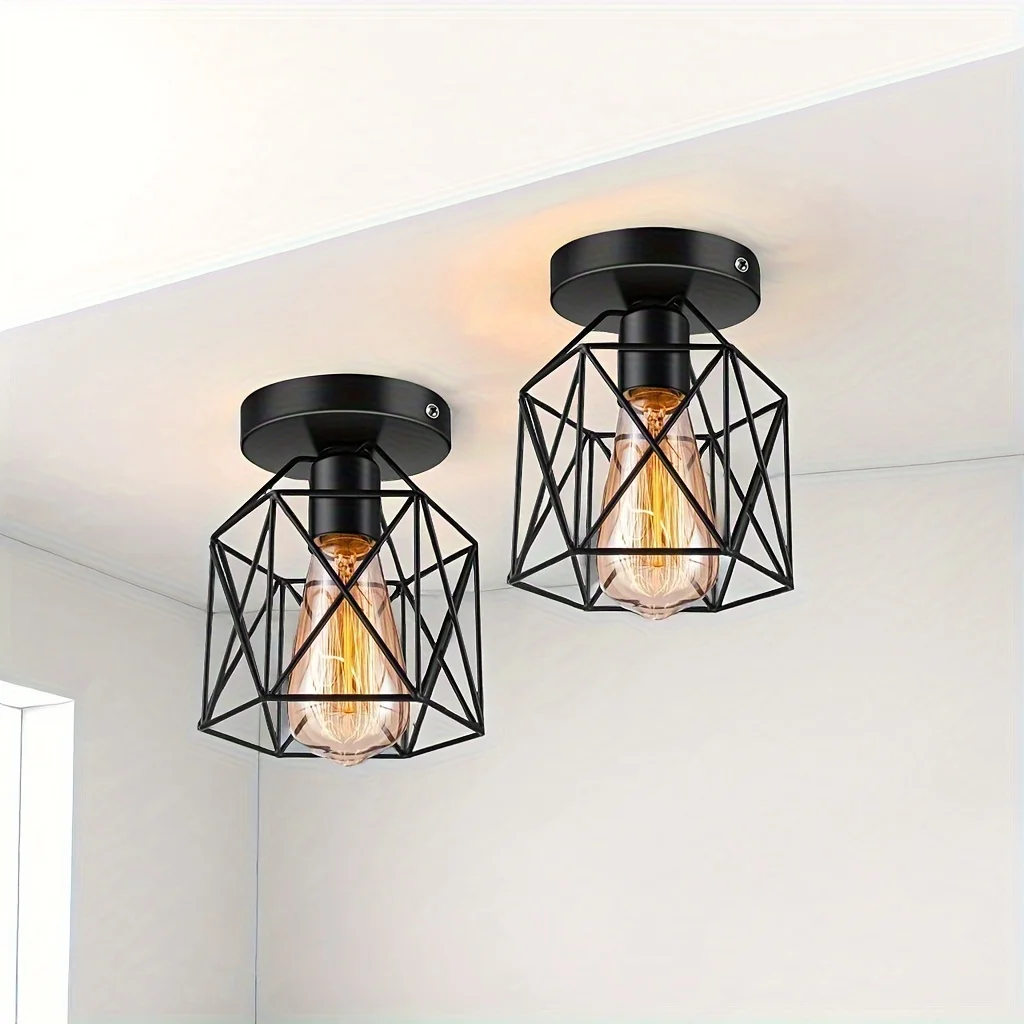 Ceiling Light E27 Iron Lamp Body Indoor Lighting Lights For Aisle Bedroom Vintage Ceiling Metal Cage Fixture Lights 110-240V