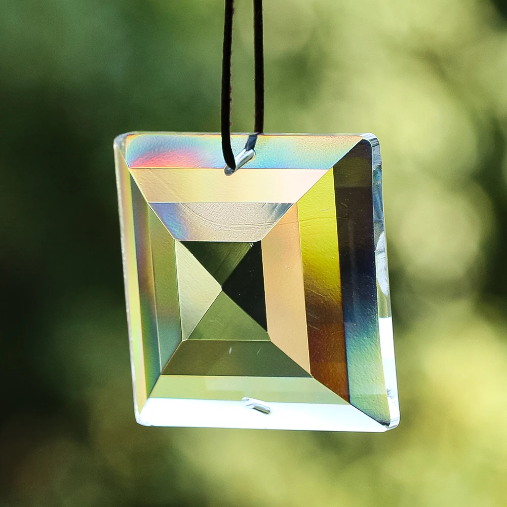 48mm Trapezoidal Crystal Suncatcher Prism Hanging Chandelier Parts Faceted Square Flat Pyramid Glass Pendant Garden Window Decor  Read more