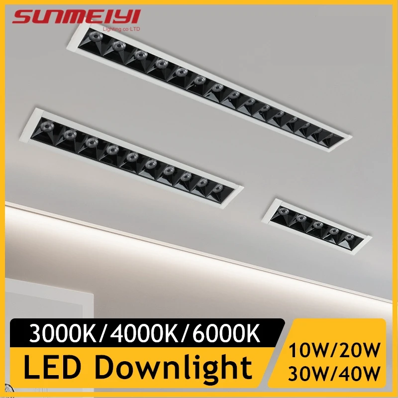 New LED line Downlight Recessed Rectangle Grille Ceiling Lamp 10W 20W 30W AC85~265V LED Spot Light For Home Shop Decor Living