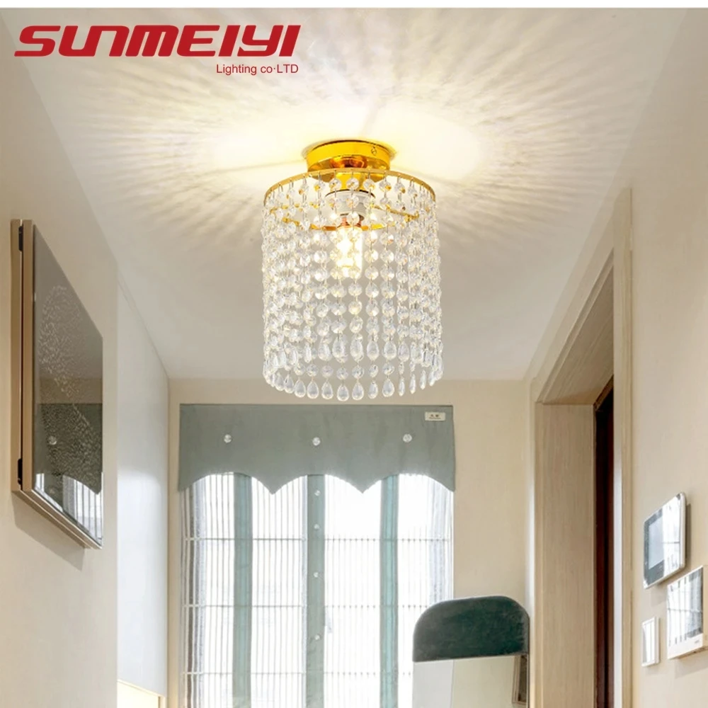 Modern Gold Crystal Small Round Ceiling light For Corridor Aisle Balcony Bedroom Living Room Led Home Indoor Light Fixtures