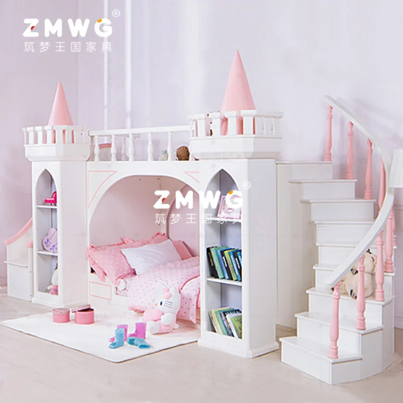 Custom. Dream Factory Custom Solid Wood Children's Princess Castle Bed Theme Hotel Girl Bunk Bed High and Low Bed
