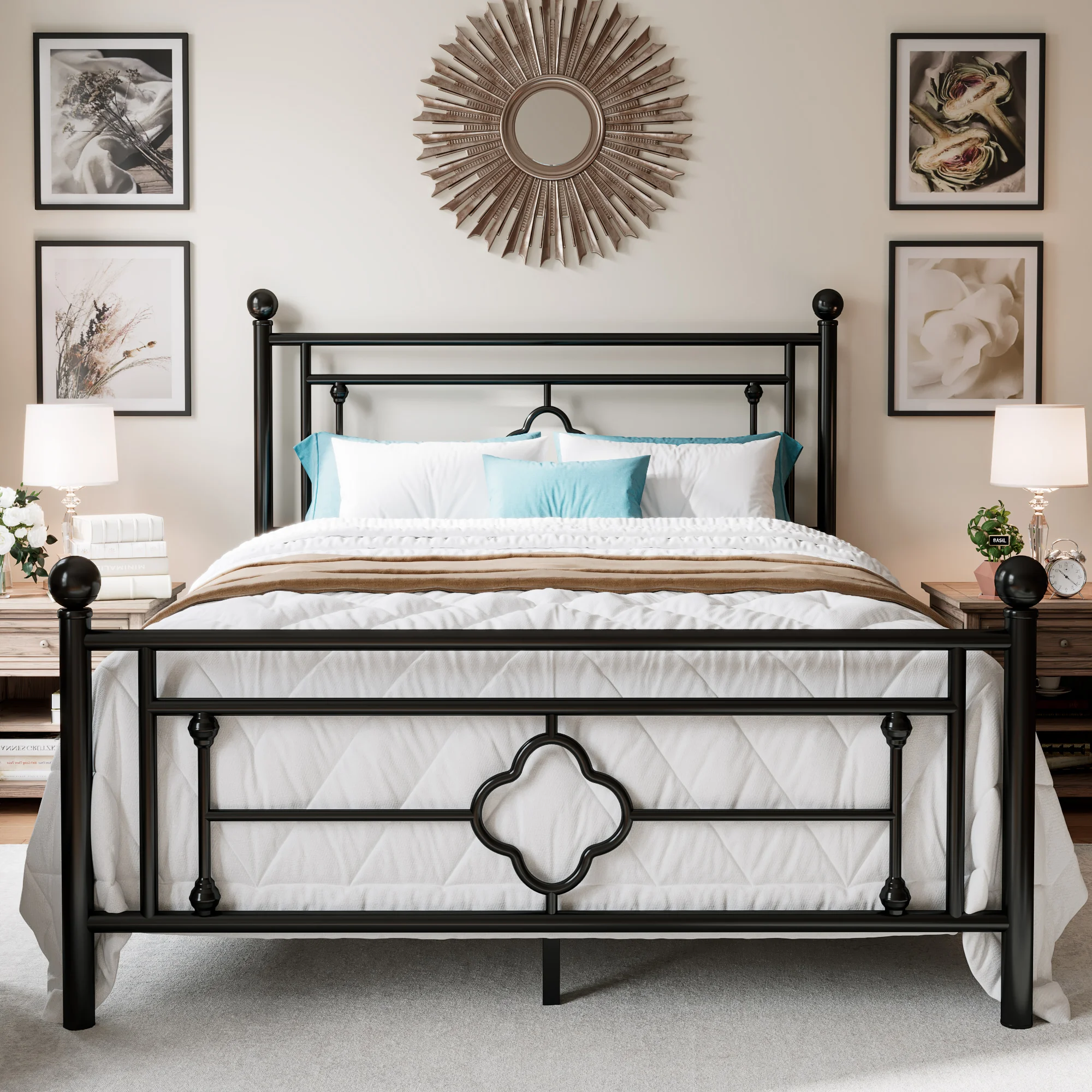 HOOMIC Metal Platform Bed Frame with Vintage Circular Design Headboard and Footboard, Extra Under-Bed Storage Allewie