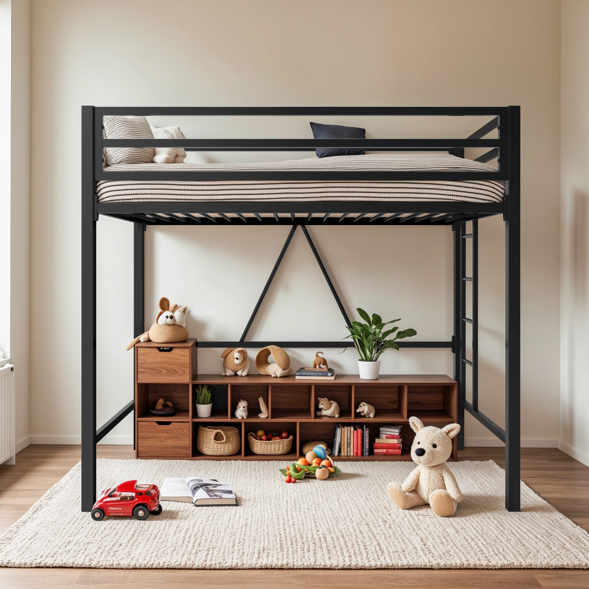 HOOMIC Modern Twin Size Metal Loft Bed Frame with Full-Length Guardrail, Removable Ladder, Space-Saving Design Allewie