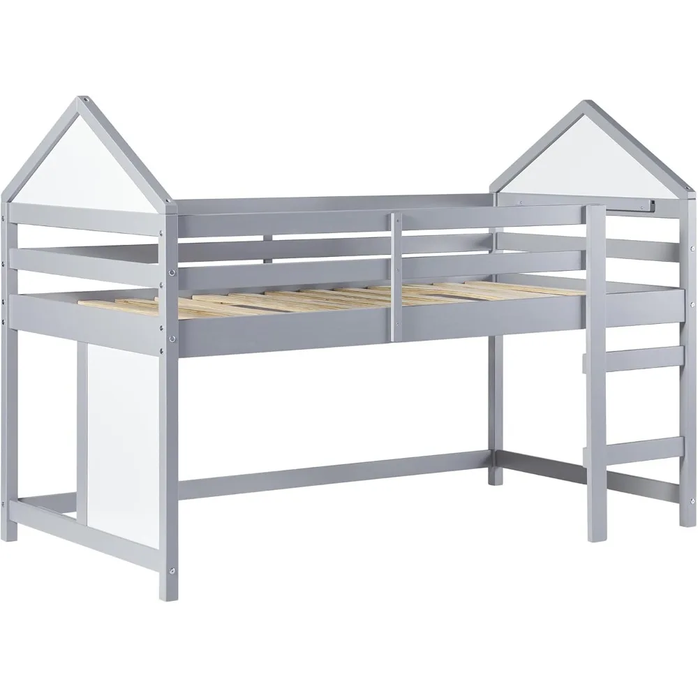 Walker Edison Skylar Kids Twin Low Loft Bed with Rails, Solid Wood, No Box Spring Required, Grey