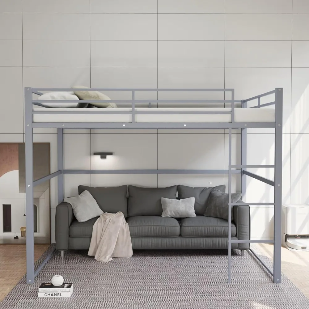 Metal Loft Bed Full Size, Loft Bed Frame with Safety Guard Rails & Flat Ladder, Twin Loft Bed for Kids Teens Adults, Gray  Read more