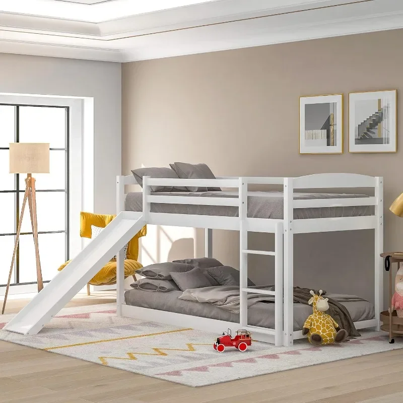 Solid Wood Low Bunk Bed w Slide, Ladder, Safety Guard Rails, 400LBS Wooden Twin Bunk Beds for Teens/Adults Low Bed Frame Bedroom  Read more