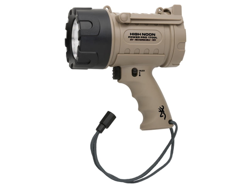 Browning High Noon Power Pro Spotlight Lithium-ion 1700 Lumens LED White Polymer 3717805. The High Noon Power Pro is feature rich spotlight that has one additional feature that is not common to other rechargeable hand helds it can be used...  Read more