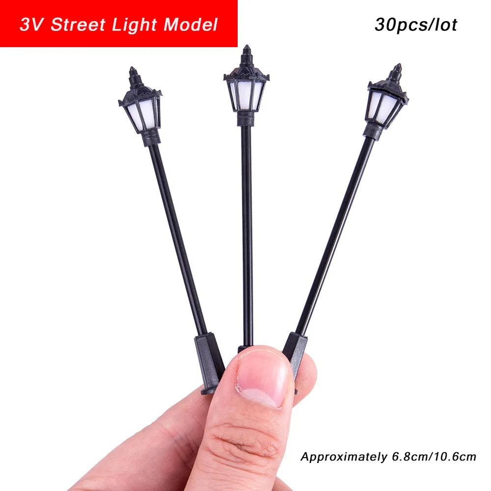 30pcs 6.8cm 10.6cm Miniature Light Railway Train Lamp 3V LED Street Lamppost Architecture Building Layout for Park Decoration