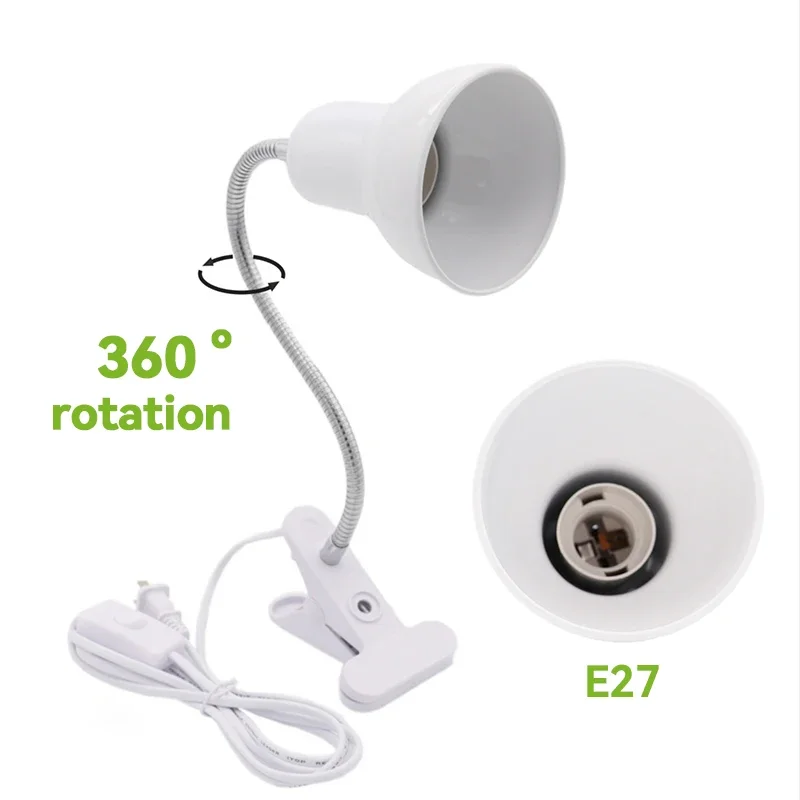 Desk Lamp with Clamp Base and Adjustable Gooseneck, EU US Plug in Clip Lamp for Bed/Cupboard Dorm Room Reading Lamp