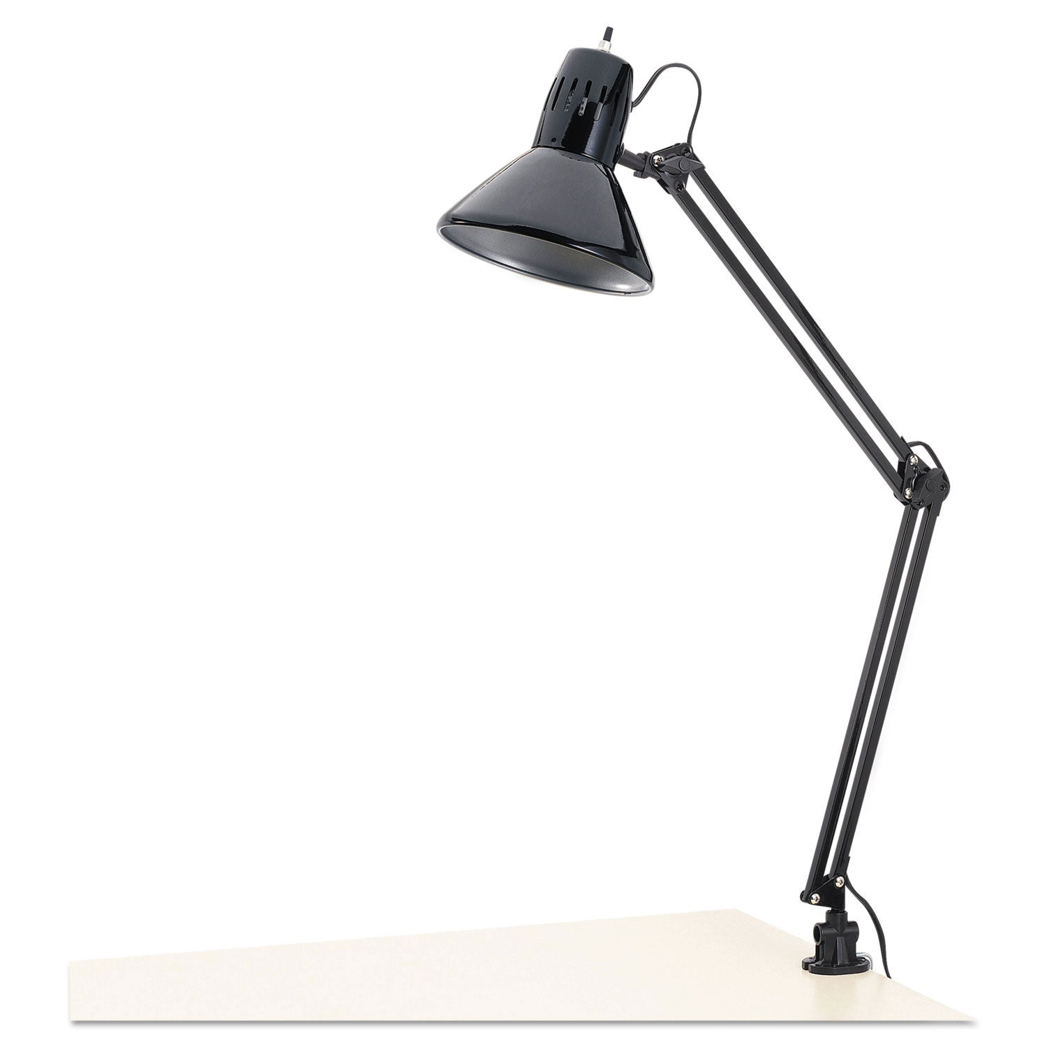 A classic take on the professional architect's lamp for wide light dispersal. Two-point adjustable arm for maximum reach when you need it and out-of-the-way when you don't. Lamp rotates 360° in clamp for maximum flexibility at work station....  Read more