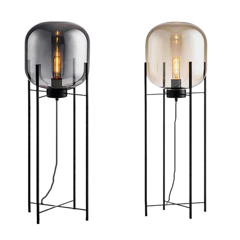 Postmodern Nordic Industrial Style Smoke Gray Glass Four-legged Floor Lamp Creative Personality Living Room Bedroom Table Lamps  Read more