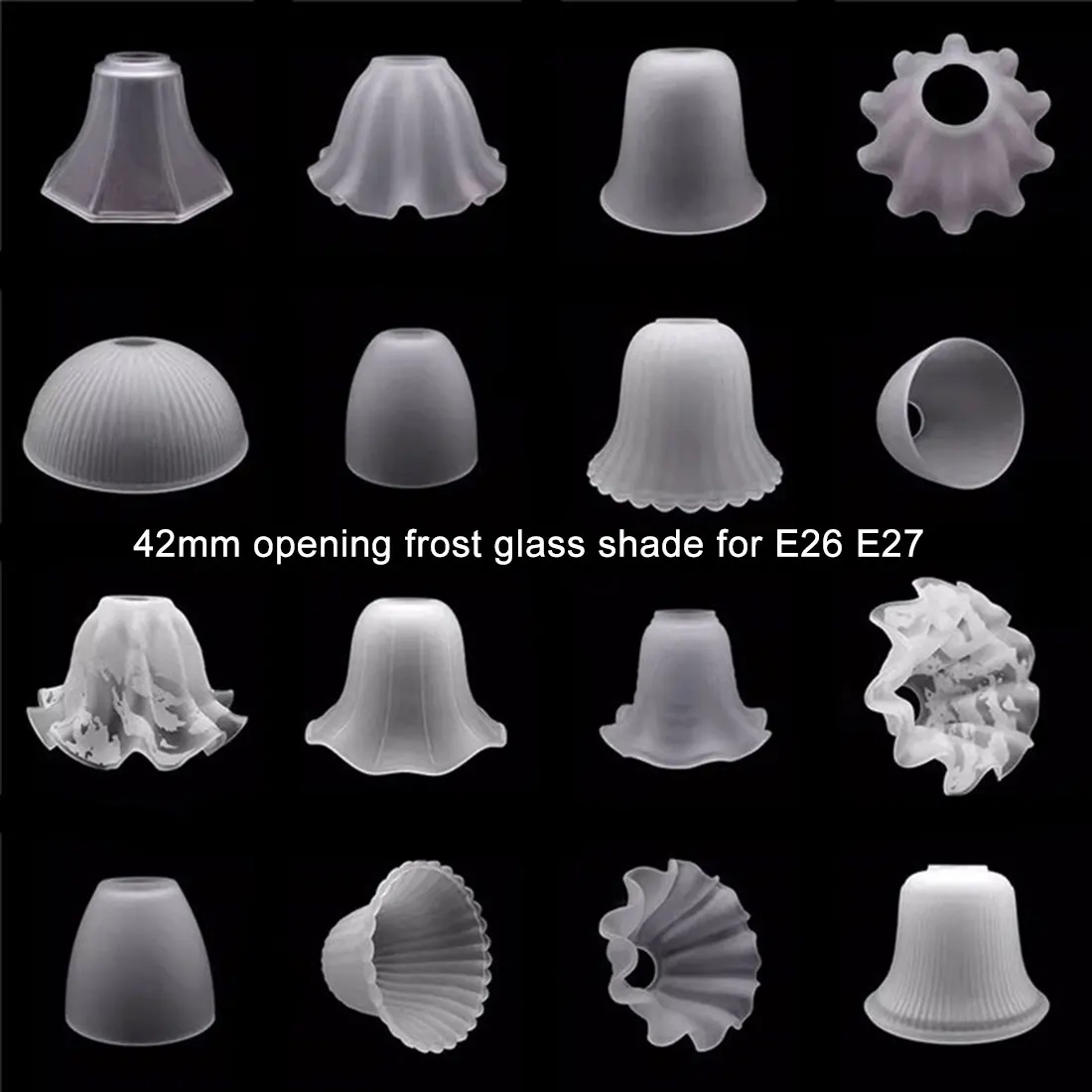 Vintage E27 Frost White Glass Shade Replacement with 4.2cm Opening, Frosted 42mm Hole Bell Shaped Lampshade for Pendant Lighting