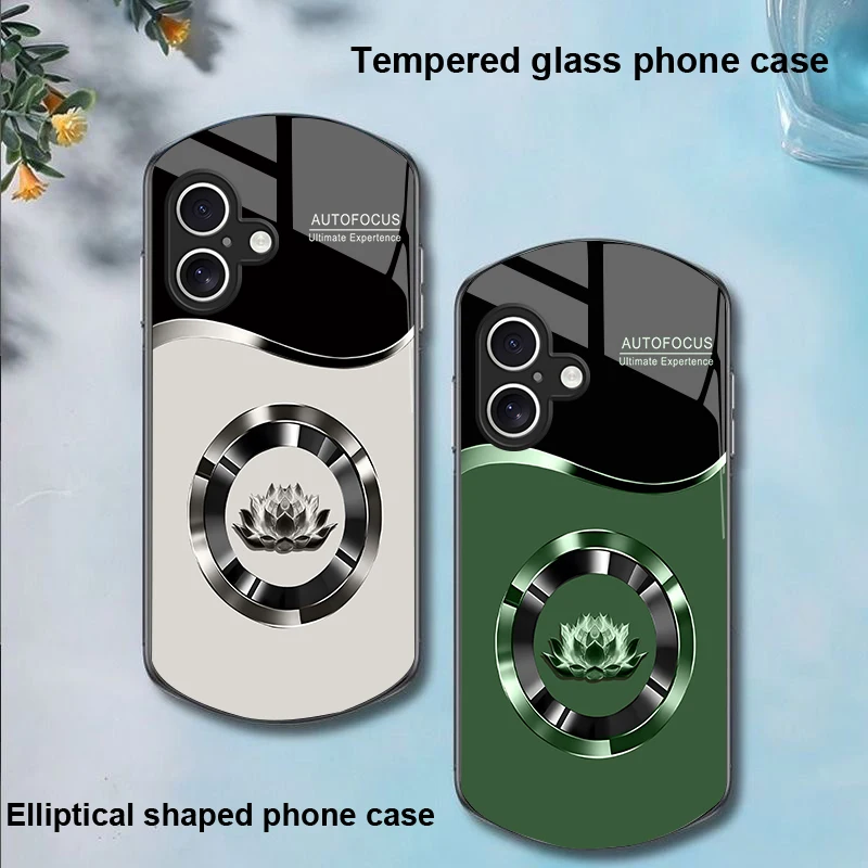 Circle Lotus White For Apple IPhone 16 11 13 15 14 Pro Max 12 Mini 7 8 Plus XR X XS Elliptical Shaped Tempered Glass Phone Case