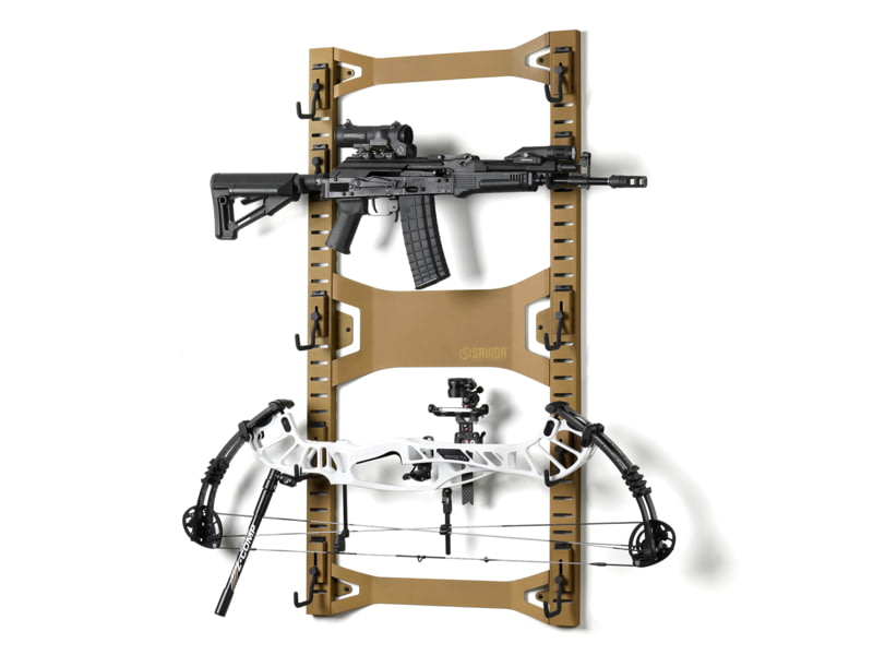 Savior Equipment Horizontal Wall Rack w/10 Hooks RAL 8000 Tan 43.5in H x 22.3in W x 0.75in D RK-ARC5FG-WM-TN