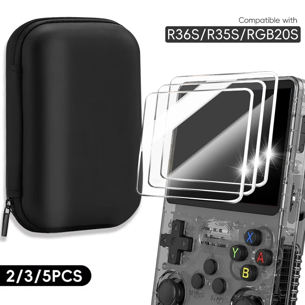 Screen Protector+Portable Carrying Case for R36S Handheld Console Storage Bag & Anti-Scratch Tempered Glass for R36S Accessories