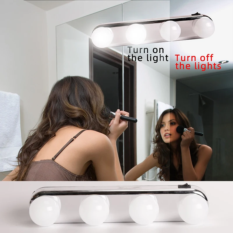 Portable LED 4/5 Bulbs Makeup Mirror Light Hollywood Vanity Lamp Wall Kit Night Lights for Dressing Table Desk Reading Lighting
