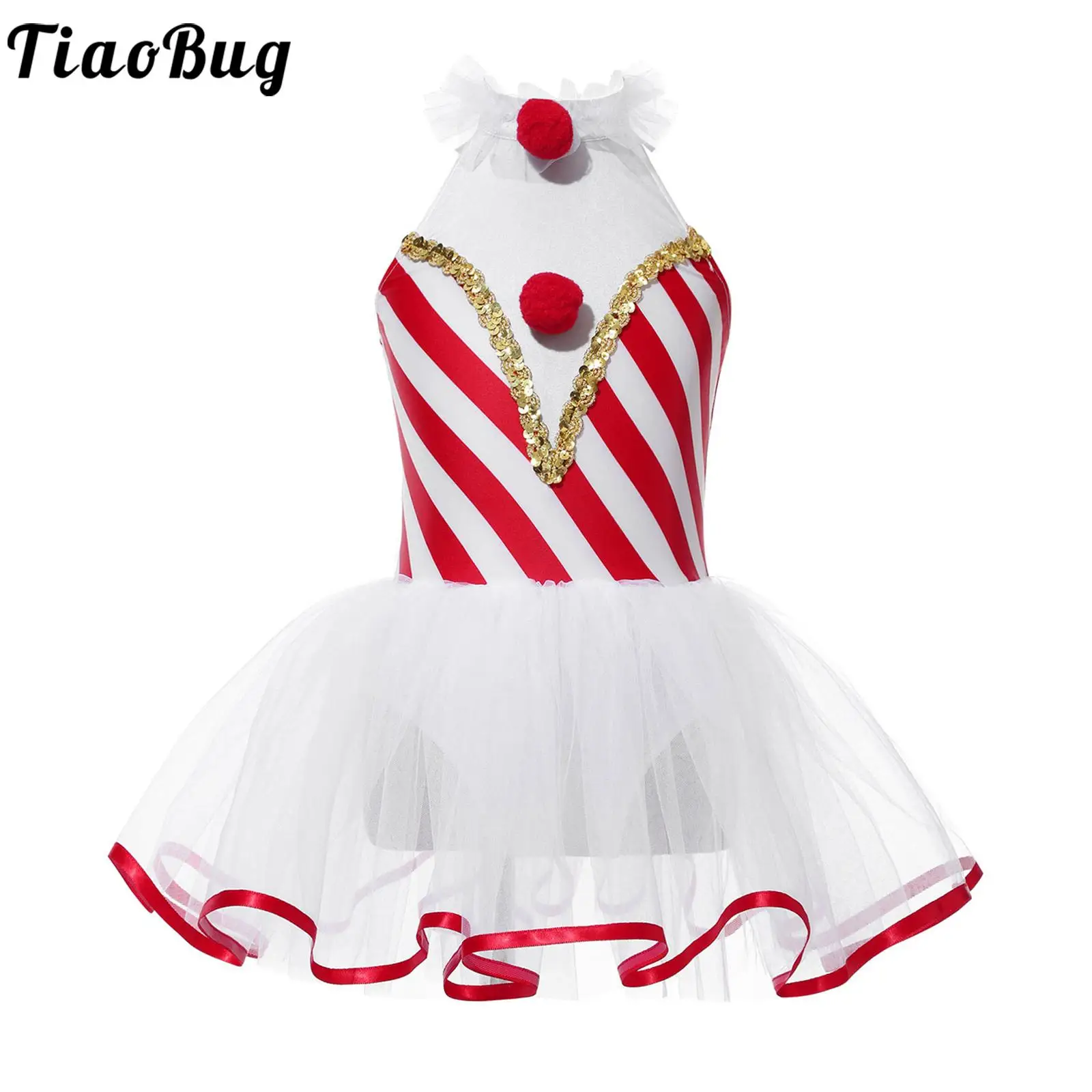 Kids Girls Candy Cane Mrs Santa Claus Costume Shiny Sequins Christmas Dance Figure Ice Skating Tutu Dress Leotard Dancewear