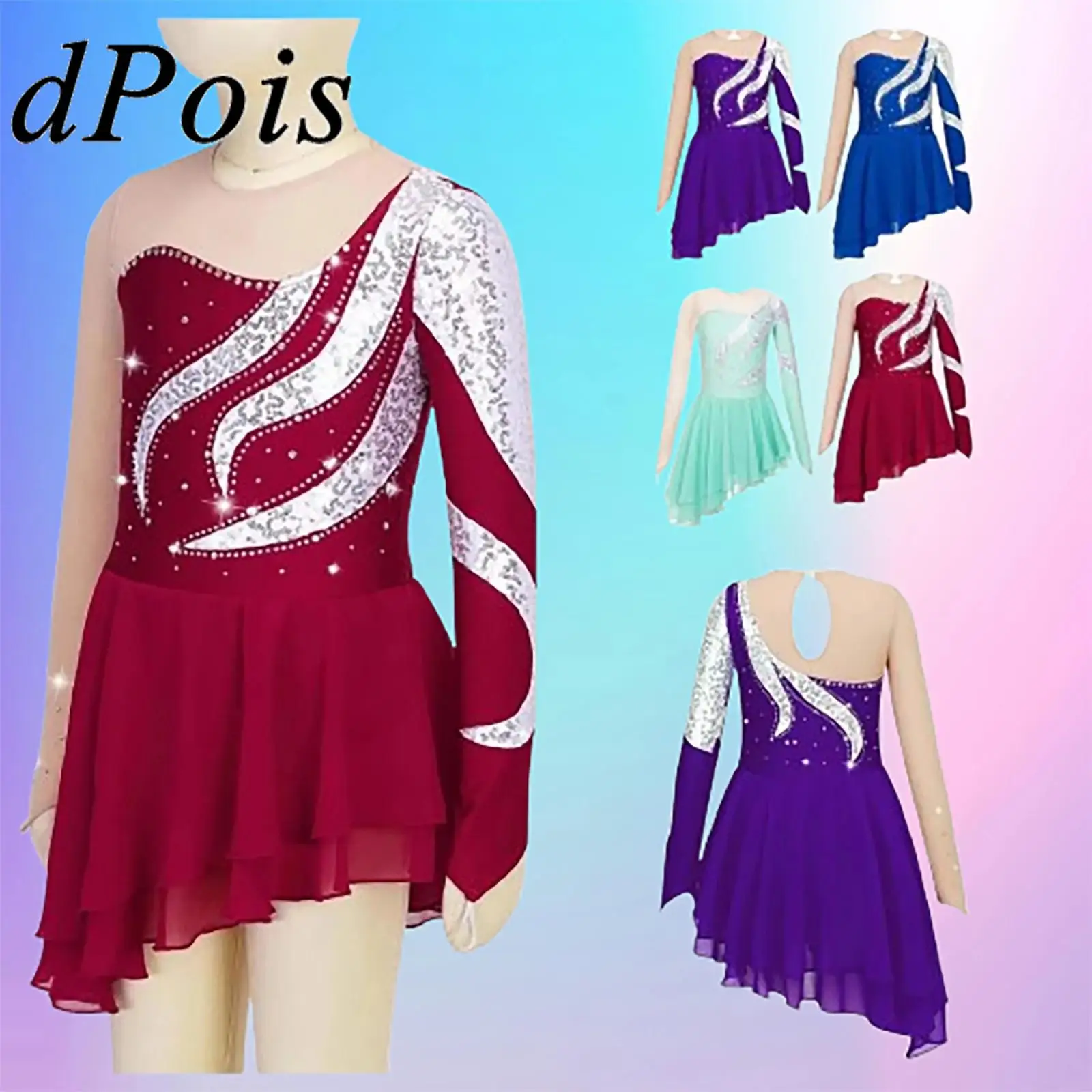 Kids Girls Figure Skating Leotards Rhythmic Gymnastic Costume Jumpsuit for Dancing Ballet Competition Performance Dresses