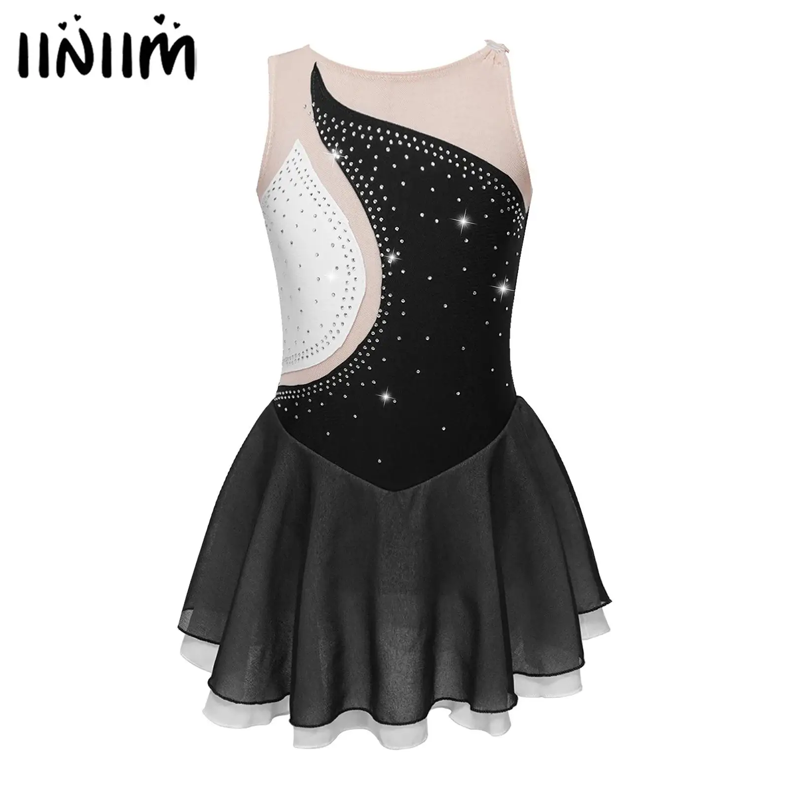 Kids Girls Sparkling Rhinestone Gymnastics Artistic Figure Skating Dance Leotard Costume Ballet Jersey Lyrical Dance Dresses