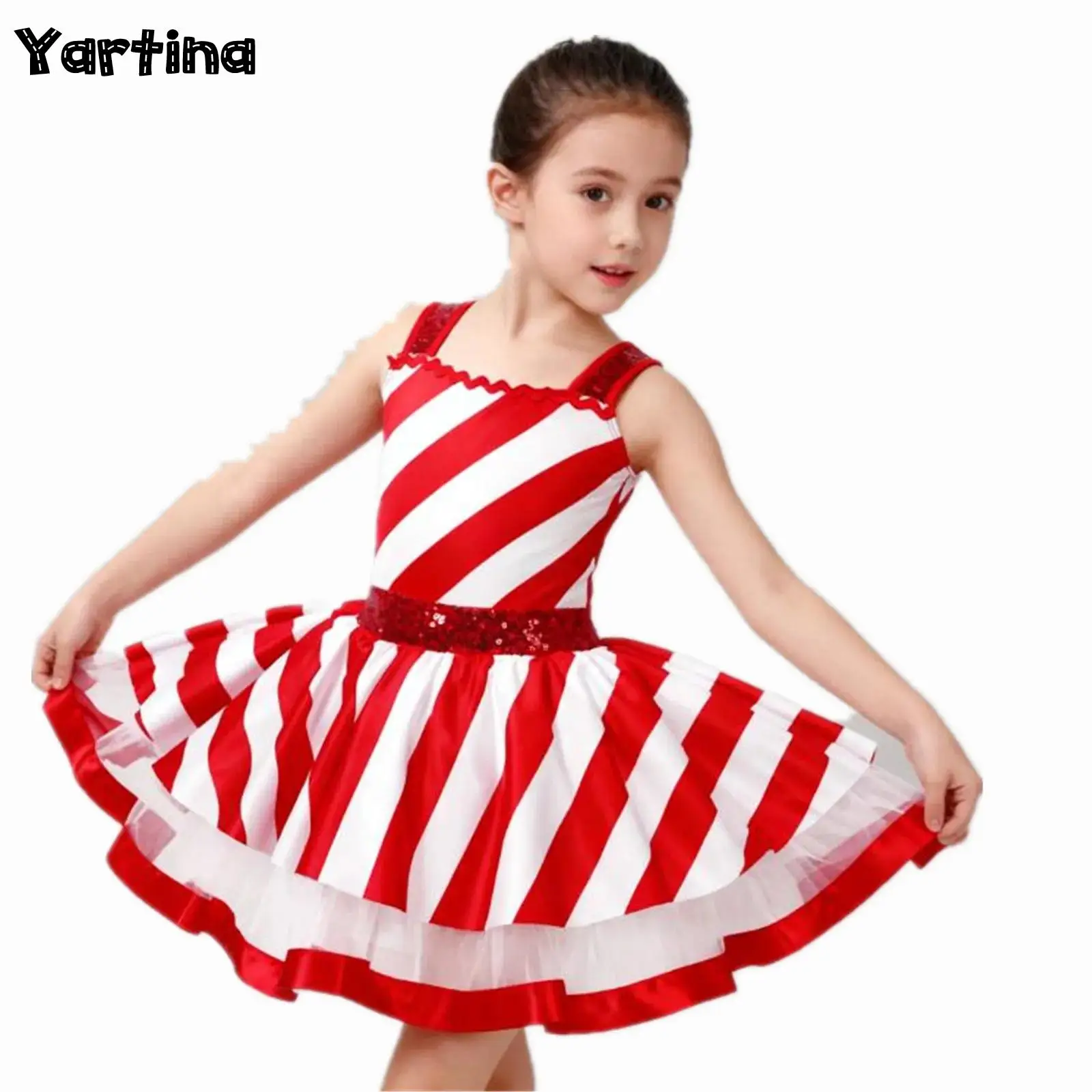 Kids Girls Ballet Tutu Dance Costume Candy Cane Mrs Santa Claus Christmas Costume Artistic Figure Skating Twirling Leotard Dress