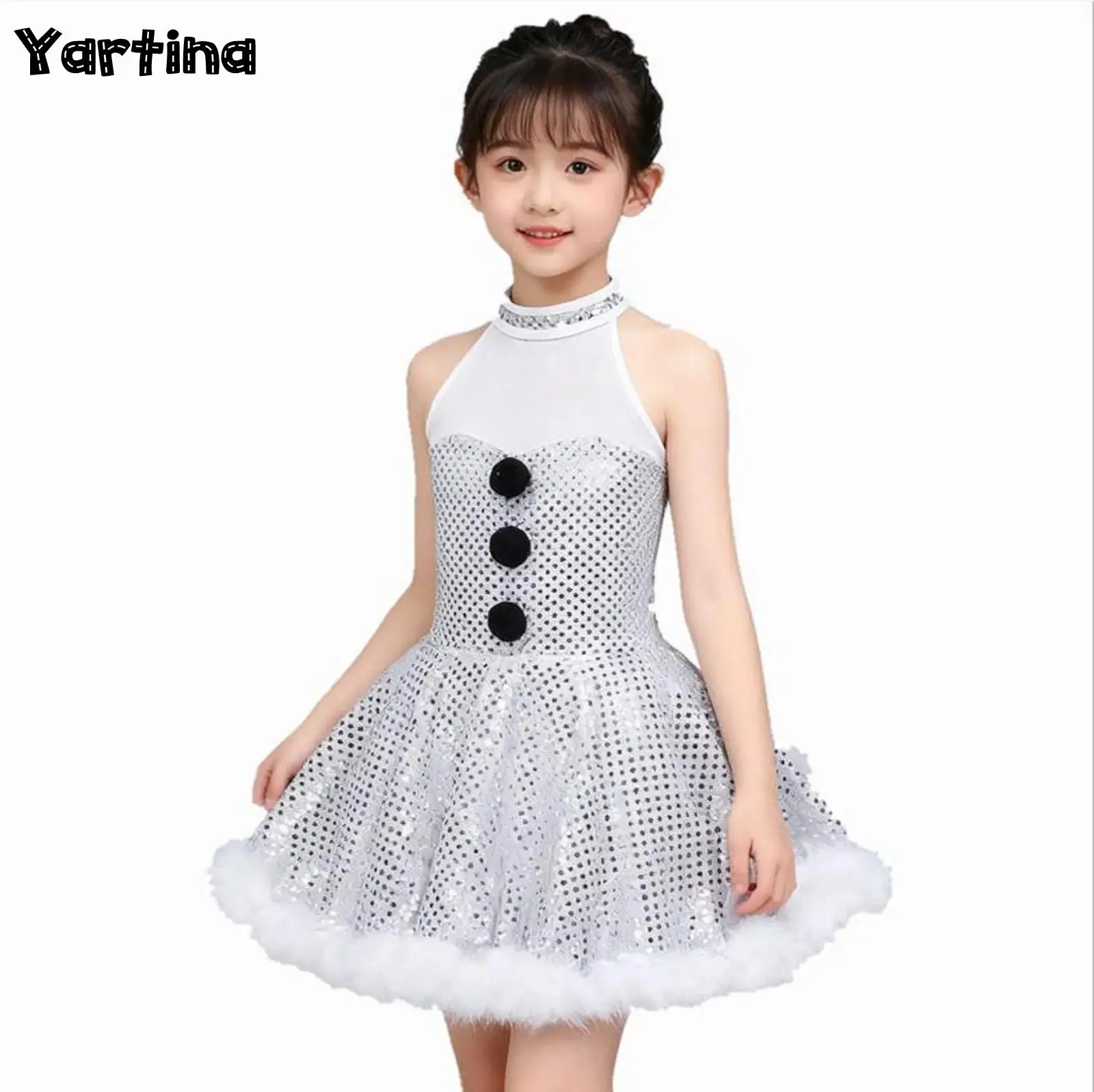Girls Shiny Sequins Christmas Xmas Santa Snowman Cosplay Costume Figure Ice Skating Roller Skating Twirling Dress Dancewear