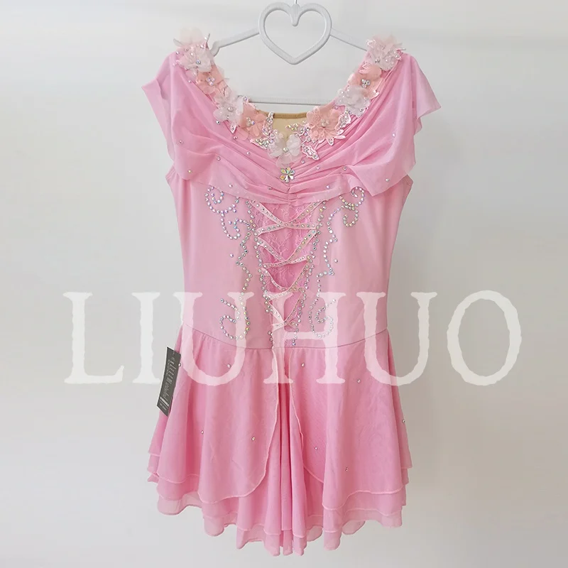 LIUHUO Ice Figure Skating Dress Girls Women Teens Stretchy Spandex Pink Competition Wholesale  Read more
