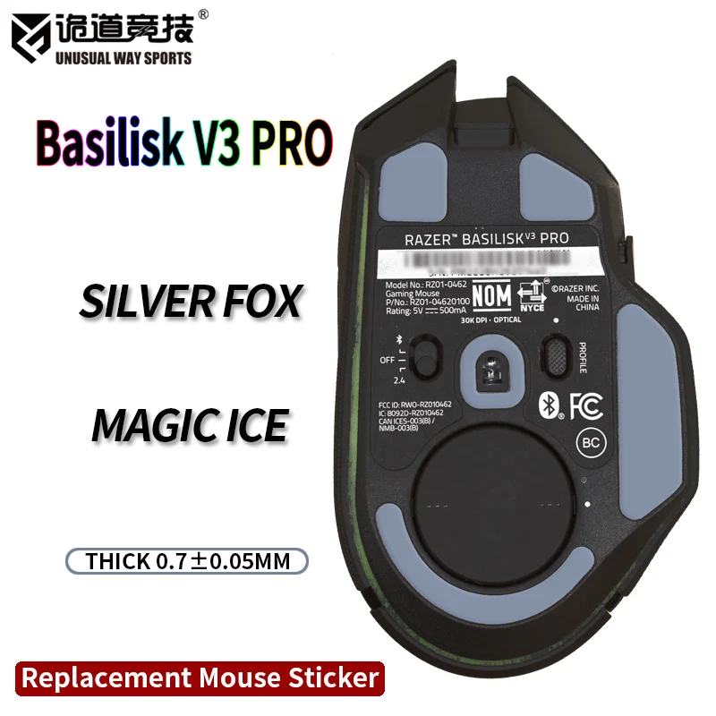 UnusualWaySports Mouse Skates Feet Basilisk V3 Pro Cambered Surface PTFE Anti Collapse Magic Ice Silver Fox