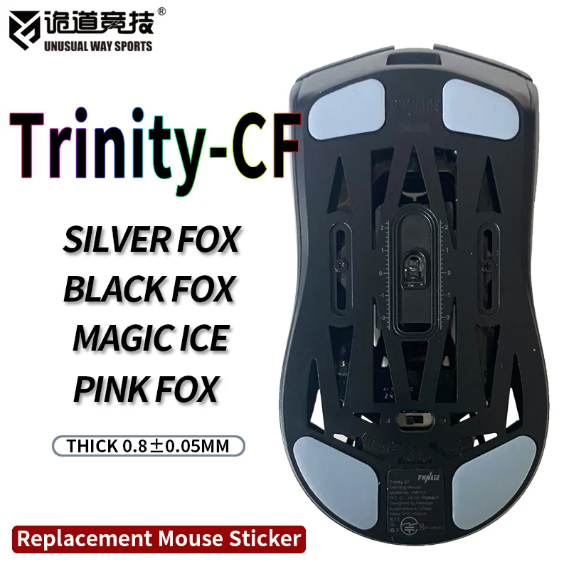 UnusualWaySports Mouse Skates Feet Pwnage Trinity CF Cambered Surface PTFE Anti Collapse Magic Ice Black Silver Fox