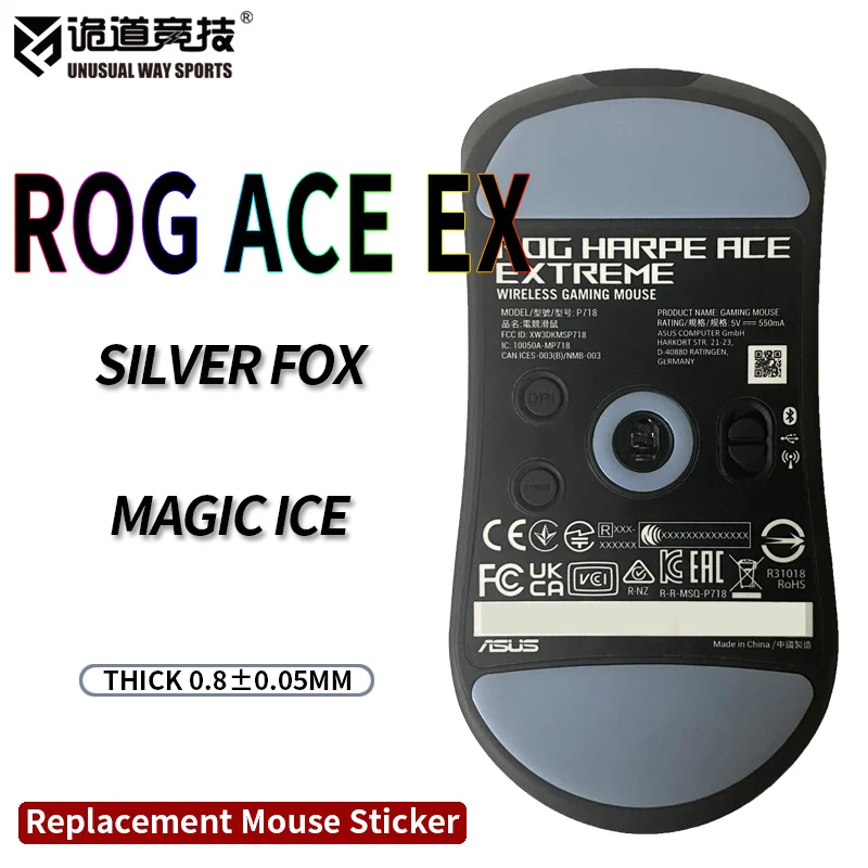 UnusualWaySports Mouse Skates Feet Rog Harpe Ace Extreme Cambered Surface PTFE Anti Collapse Multilayer Magic Ice Silver Fox