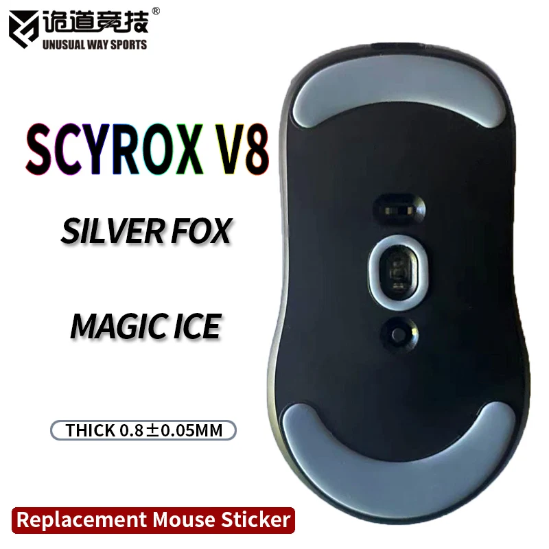 UnusualWaySports Mouse Skates Feet SCYROX V8 Cambered Surface PTFE Anti Collapse Magic Ice Black Silver Fox
