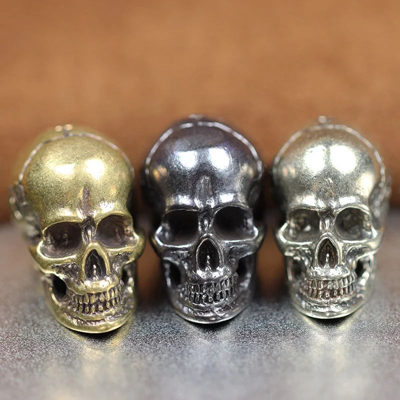 Brass Skull Knife Beads Three Holes Umbrella Rope Outdoor Vintage Skeleton Head Paracord Woven Lanyard Pendants DIY Accessories