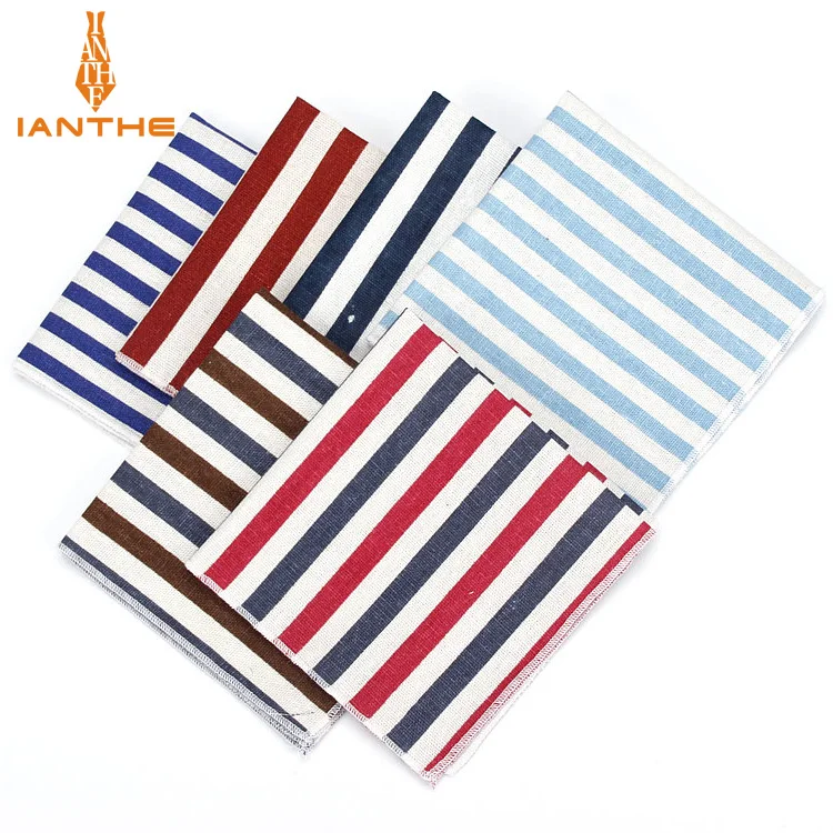 2018 Brand New Men's Fashion Linen Striped Pocket Squares For Men Square Handkerchief Wedding Vintage Suits Pocket Hankies Towel
