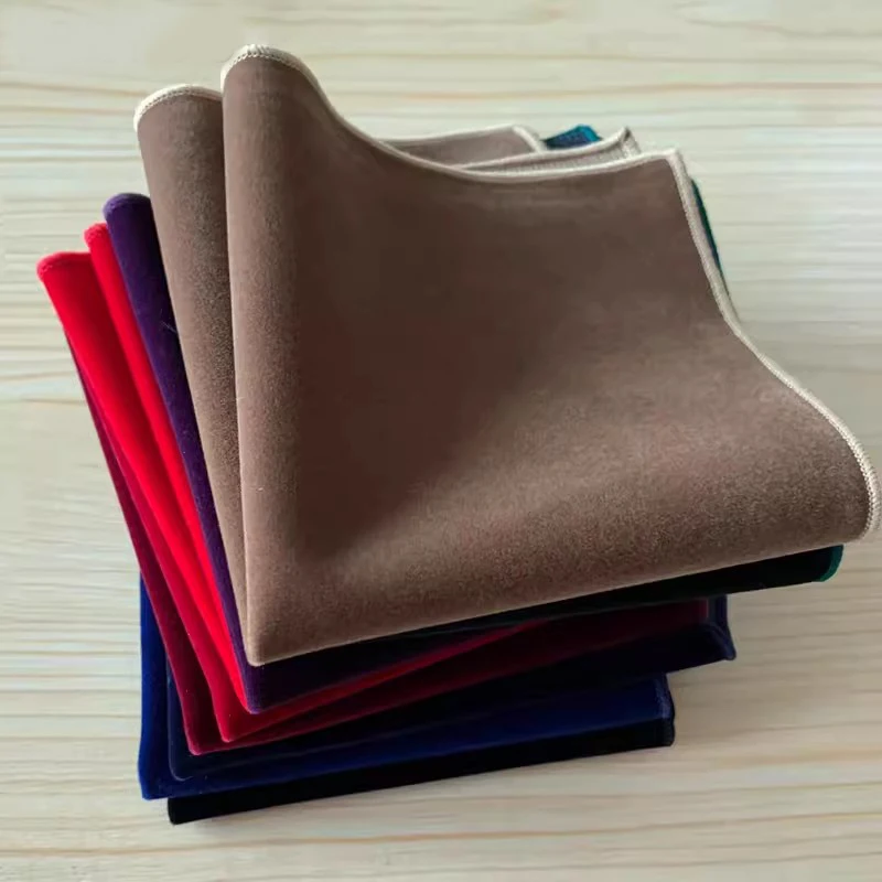 24cm New Fashion Velvet Solid Color Pocket Square For Men Elegant Black Red Brown Handkerchief Wedding Tuxedo Suit Accessories