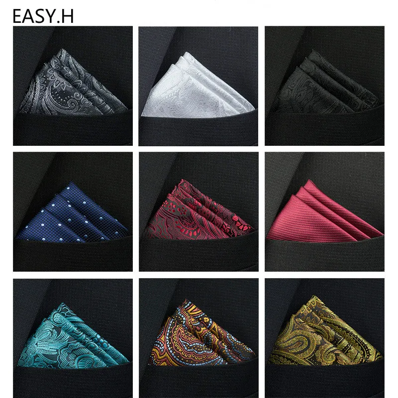 New Pocket Square Handkerchief Accessories Paisley Solid Colors Vintage Business Suit Handkerchief Breast Scarf 25*25cm