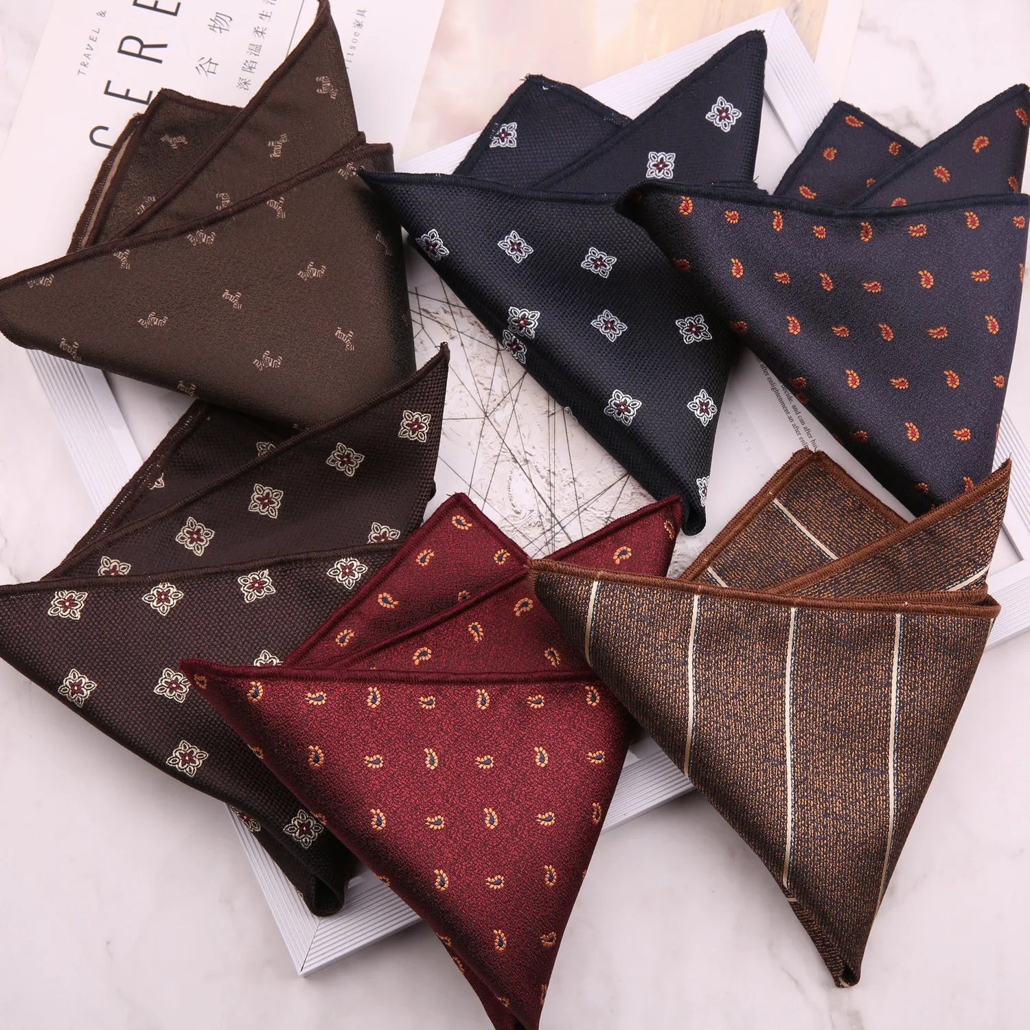 Brown Color Pocket Square For Men Adult Striped Paisley Floral Handkerchief Formal Dress Suit Accessory Navy Solid Hanky Cravat