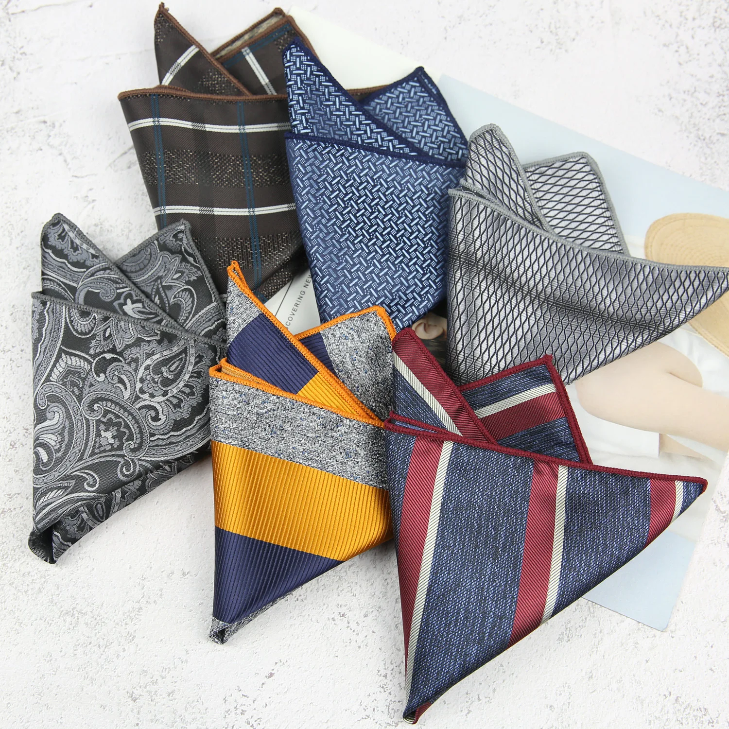 23cm Fashion Polyester Men's Pocket Square Striped Paisley Grey Handkerchief Formal Suit Cravat Pocket Chest Scarf Shirt Hanky